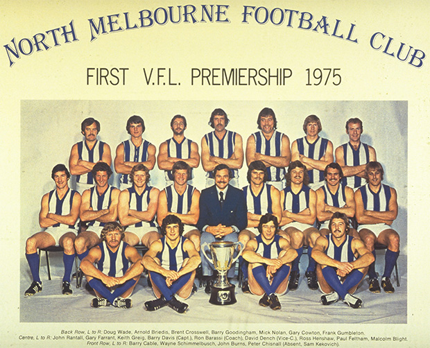 Still without a premiership to its name, North was dubbed the ‘million-dollar team’ by some in the media, as the likes of Malcolm Blight, Barry Cable, John Rantall, Barry Davis and Doug Wade were recruited.