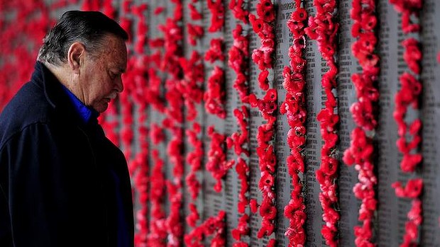 Last year he visited his dad’s World War II grave in Tobruk and considered bringing his remains home. On Wednesday, AFL legend Ron Barassi placed a poppy beside his father’s name, and said he’s glad he didn’t.